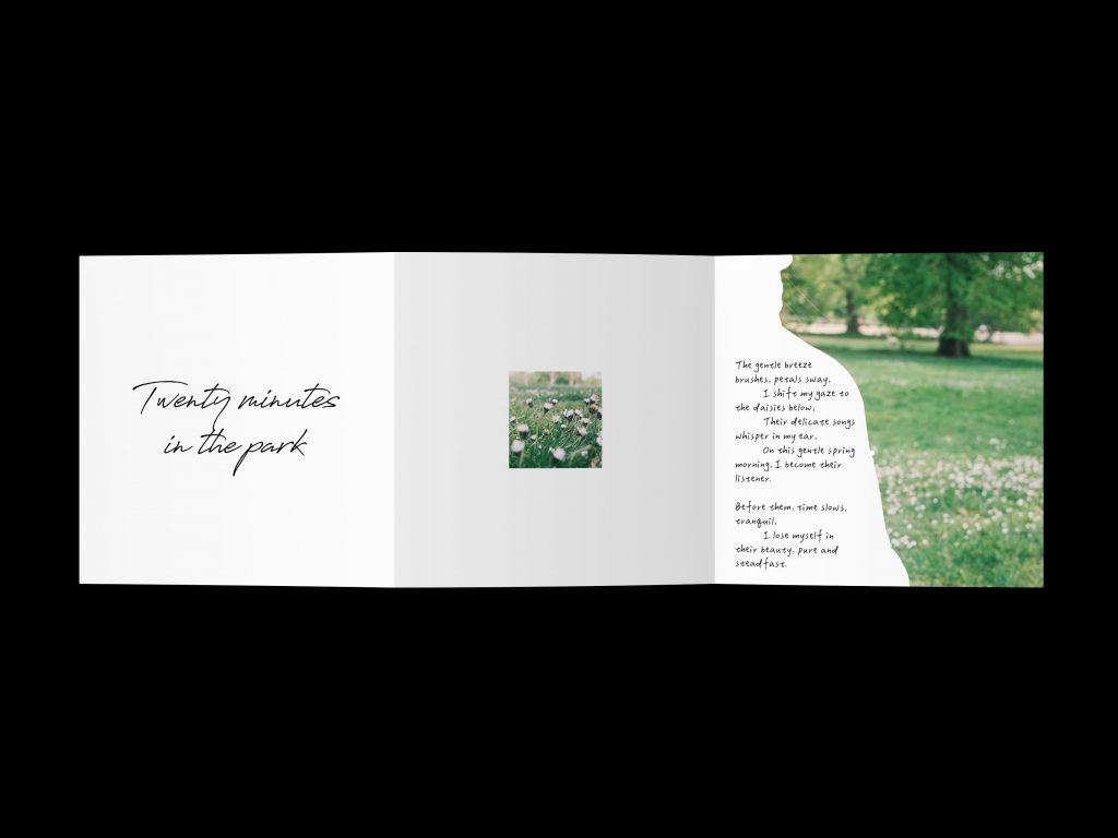 In projection1, I mainly explored the fragility of nature, developing graphic communication design around the concepts of natural decay and time scale. After a week of reflection, I’ve decided to focus solely on the theme of time scale for projection2. The 20-minute park effect has given me some inspiration for my work. These 20 minutes… Continue reading Unit 3: Projection 2 – Week 2